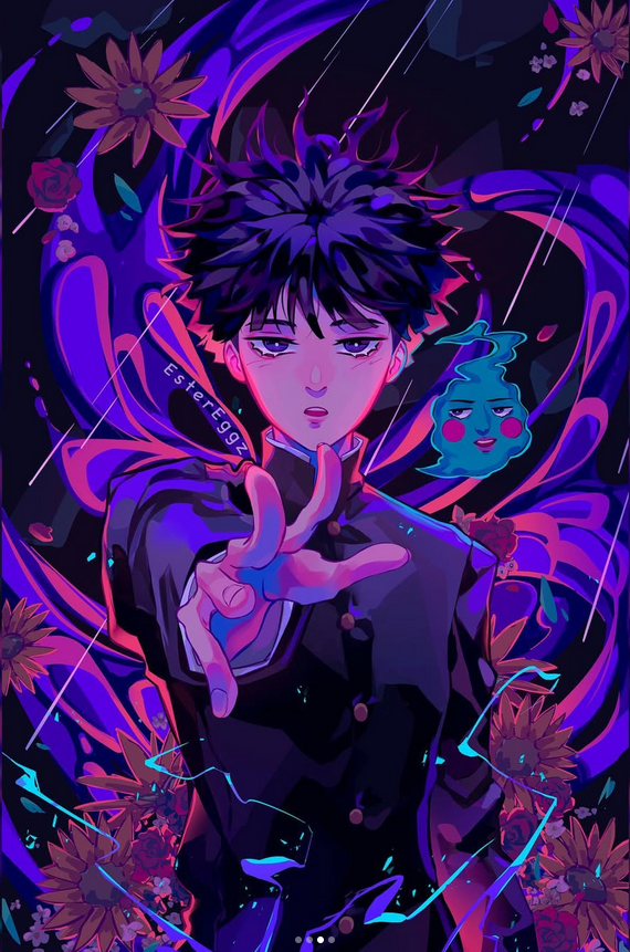 The artwork chosen for Formal Analysis is an Instagram artist named EsterEggz. It is a digital portrait depicting a figure illuminated by a neon glow against a dark, abstract background. The artist uses high contrast, saturated colour and an analogous palette to create emphasis on the subject.