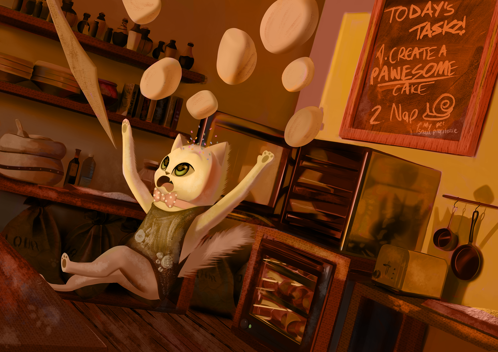 Meet Muffin, a small white cat with oversized ambition. As the apprentice at "Nine Lives and Pies," Muffin is eager to impress his mentor, Mr Jam. He is sensitive, highly creative, and dreams of baking the perfect "pawesome cake," but his enthusiasm often outpaces his coordination, leading to moments of charming chaos.
